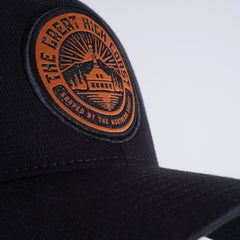 Snapbackkeps med brodyrer på flera ställen.